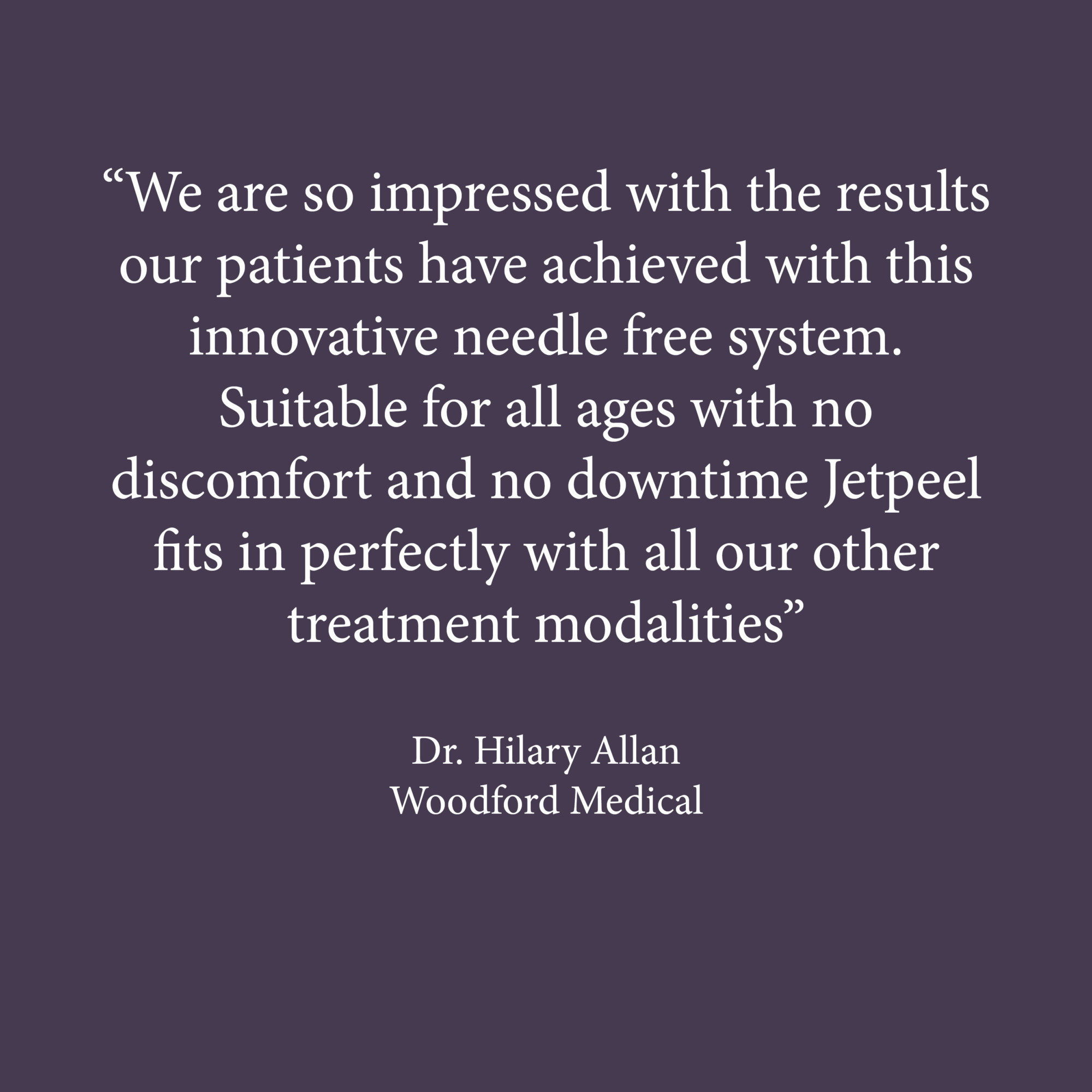 JetPeel uses high-velocity microjet streams to exfoliate, detoxify and infuse active ingredients deep into the dermis, painlessly. There’s no need for numbing, recovery time, or post-treatment redness. It’s skincare that patients love, and practitioners trust.