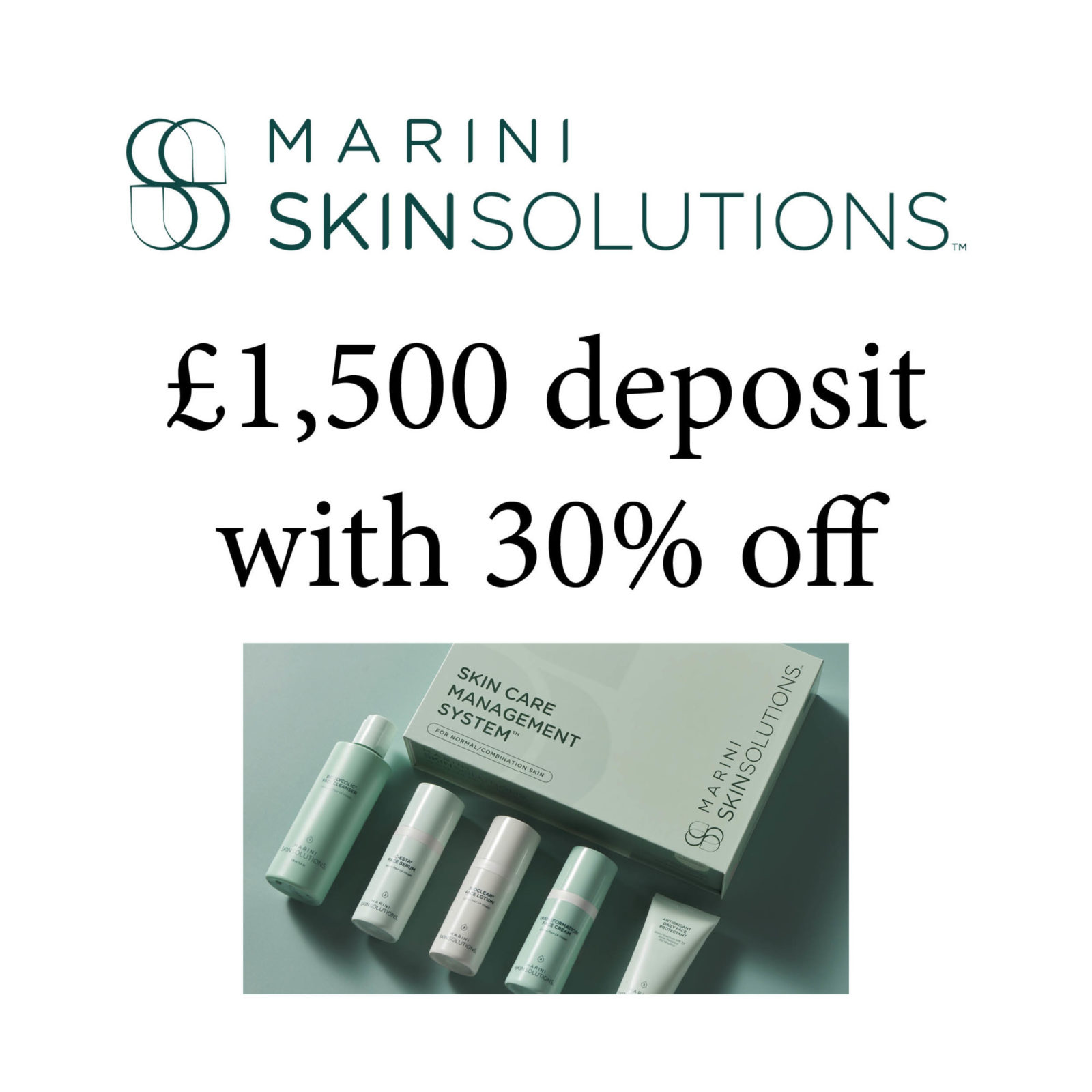 Pay £1,500 deposit for Marini SkinSoltuions products and receive 30% off