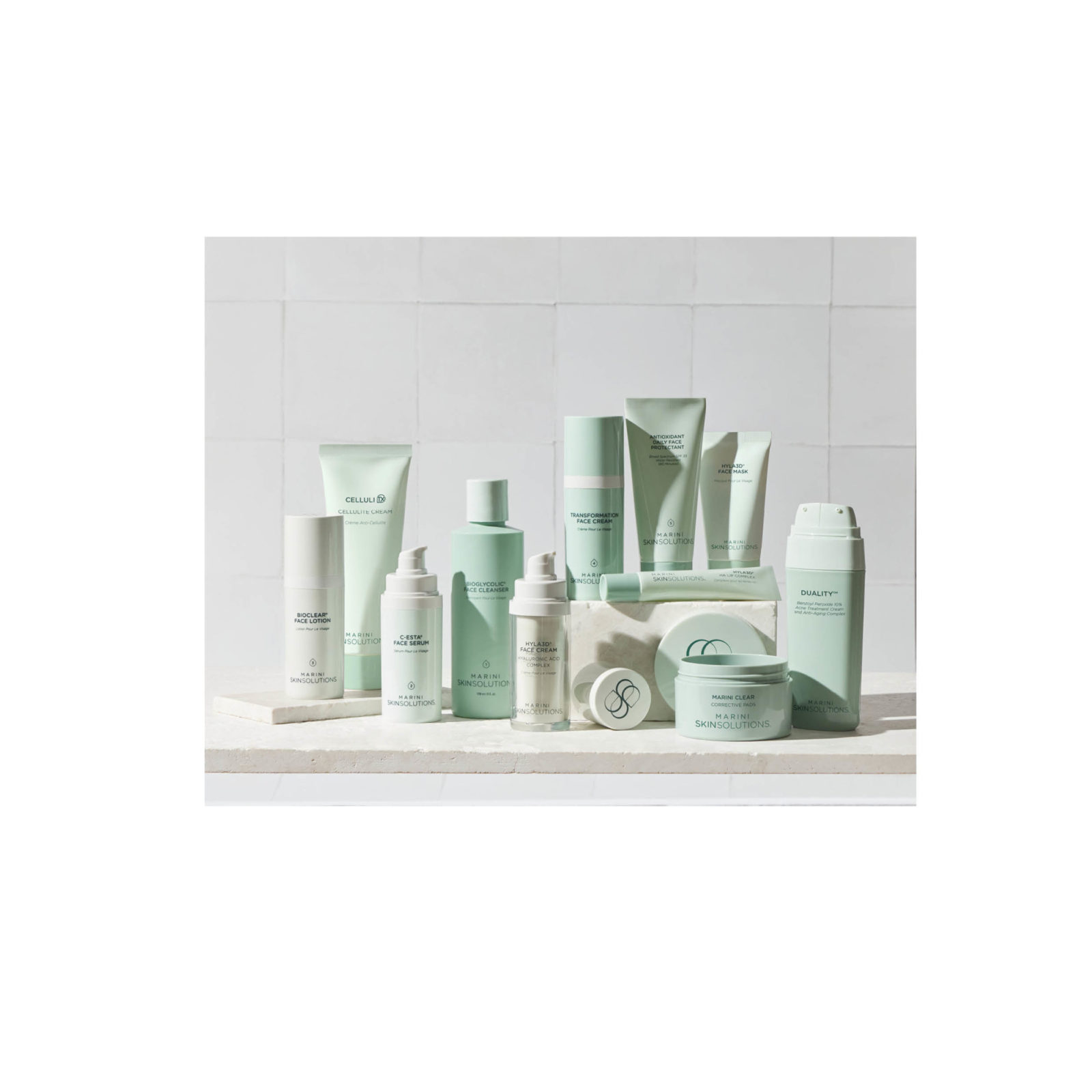 A A2 Marini SkinSolutions poster displaying the products on a grey background landscape